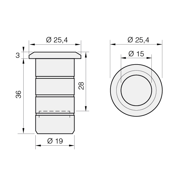 Edelstahl matt, mit gefederter Staubschutzkappe, zum Einbohren, für Rundstange oder Flachstange