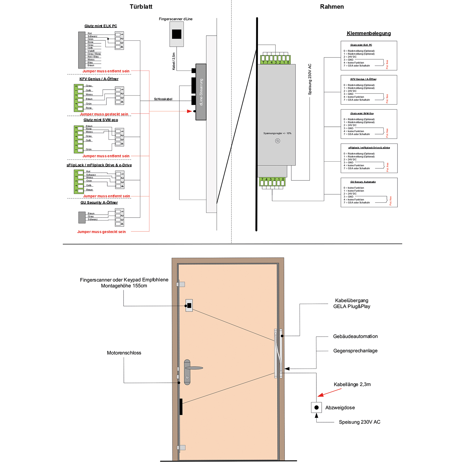 - 1 x Montage- und Anschlussanleitung, zu Zutritts-Set "GELA plug&play dLine"