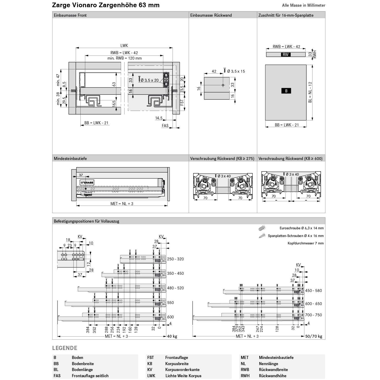 Zarge GRASS® Vionaro V13 Zargenhöhe 63 mm, für Holzrückwand