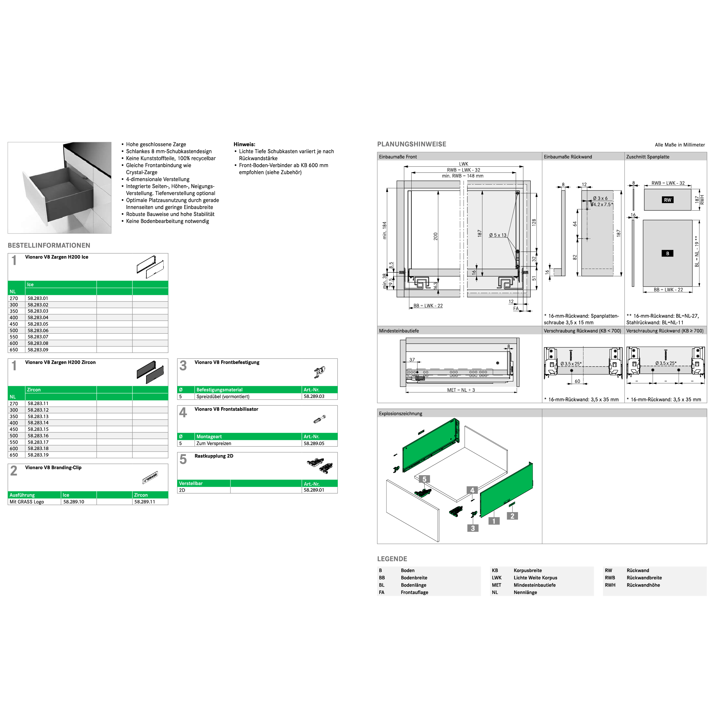 Zarge GRASS® Vionaro V8, Zargenhöhe 200 mm