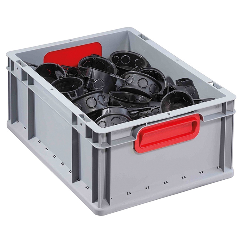 Schwerlast-Transport-Stapelkästen in Industriequaliät, rippenverstärkte Wände verleihen dem Behälter eine gute Formstabilität, der umlaufende Rand wirkt verriegelnd und selbstzentrierend, beständig gegen Öle, Fette und die meisten Säuren und Laugen, dank ergonomisch geformten Griffmulden auch bei schweren Belastungen sehr gut zu tragen