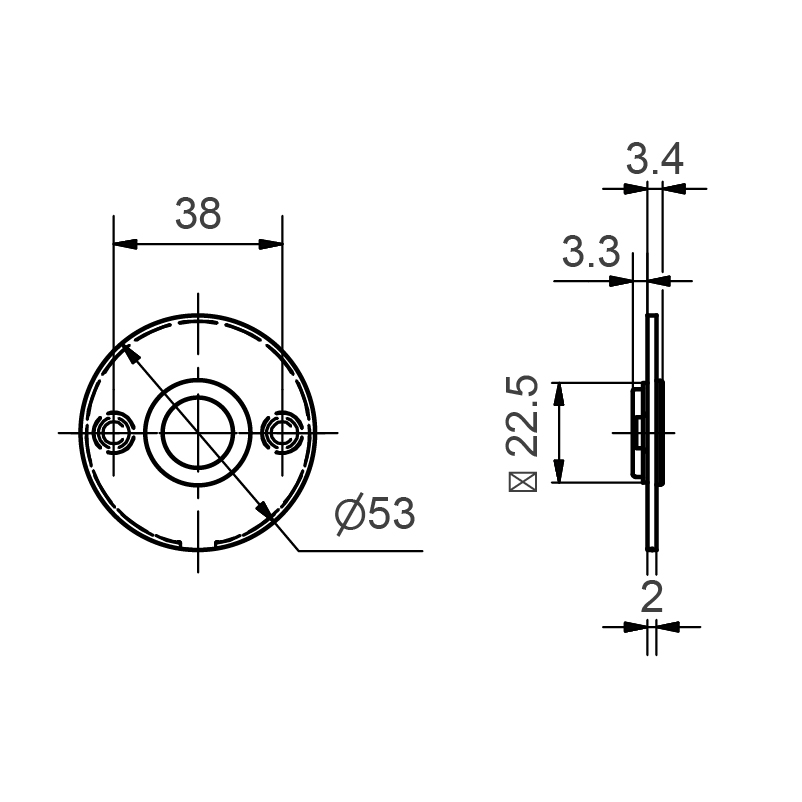 Schraubenlochdistanz 38 mm, ohne Schrauben