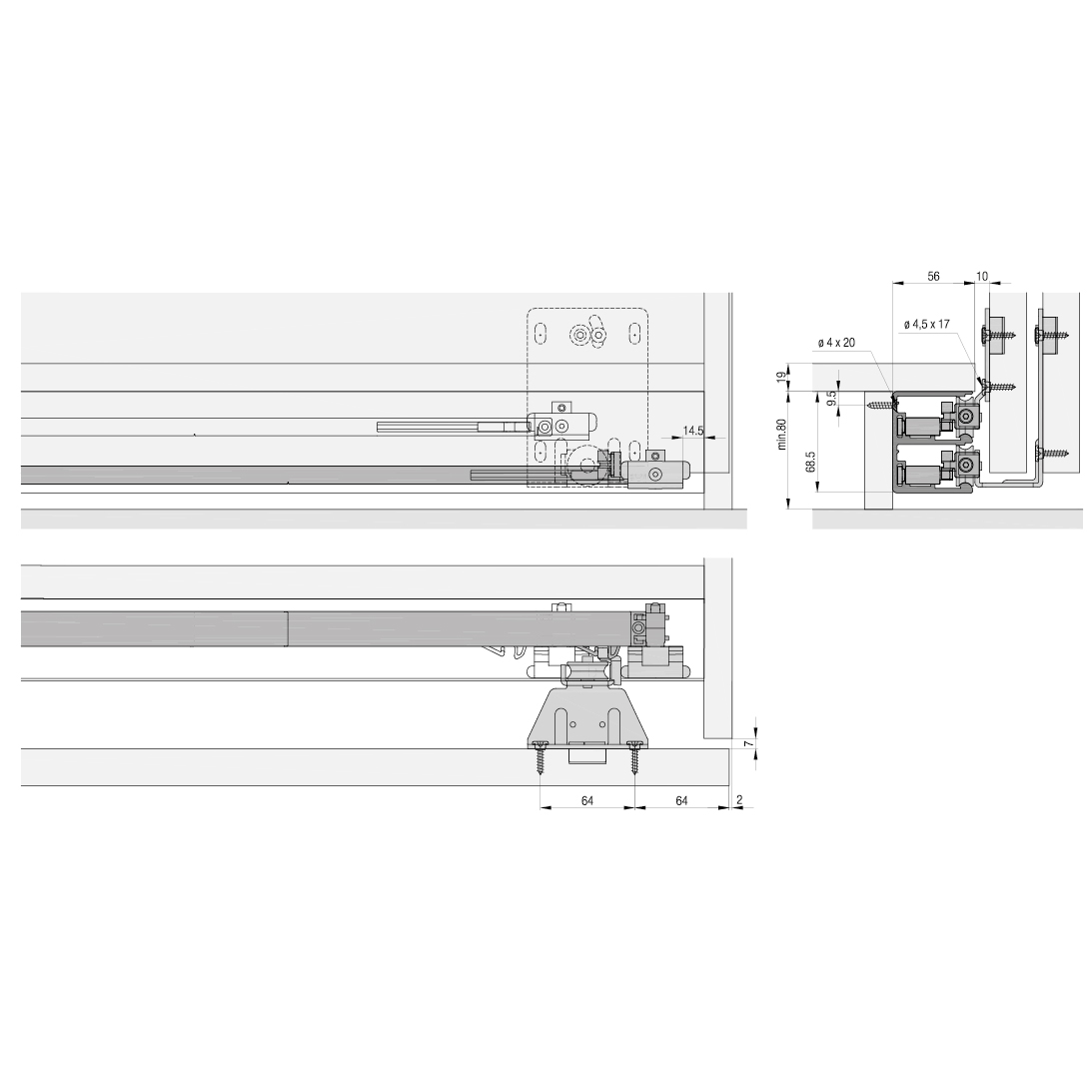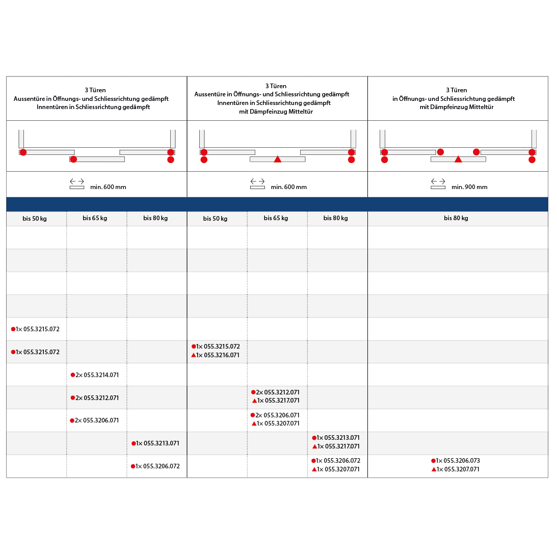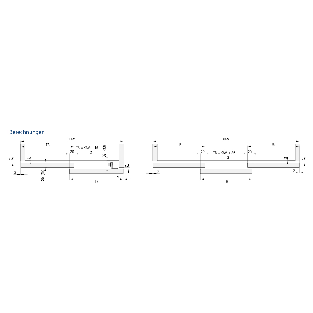 leisen und sanften Schiebekomfort für 2 bis 3-türigen Holzschranktüren, Türgewicht bis 50 kg