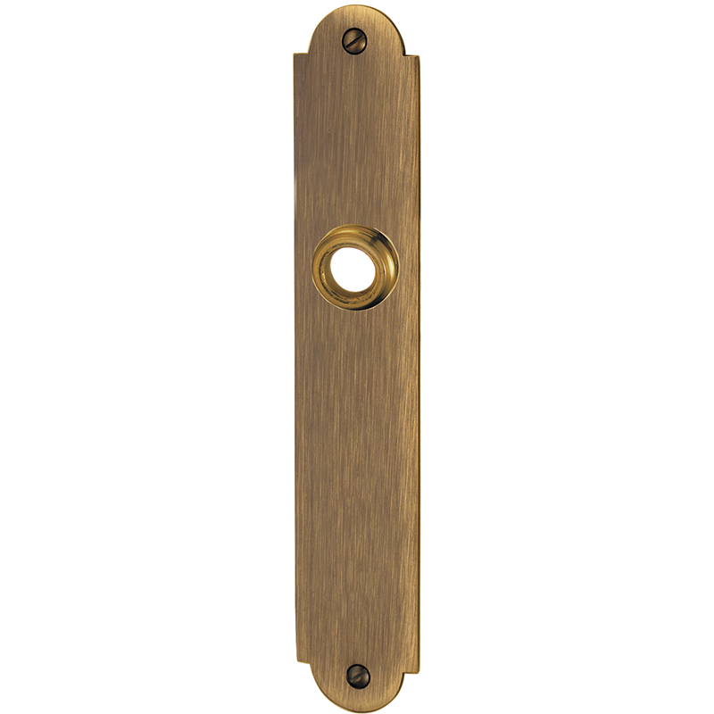 Messing brüniert, Drückerführung 16 mm, oberes Schraubenloch bis Mitte Drückerführung 62 mm, mit Schrauben