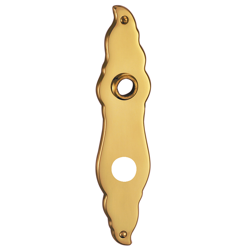 Messing poliert, Drückerführung 18 mm, oberes Schraubenloch bis Mitte Drückerführung 80 mm, mit Schrauben
