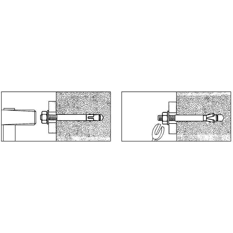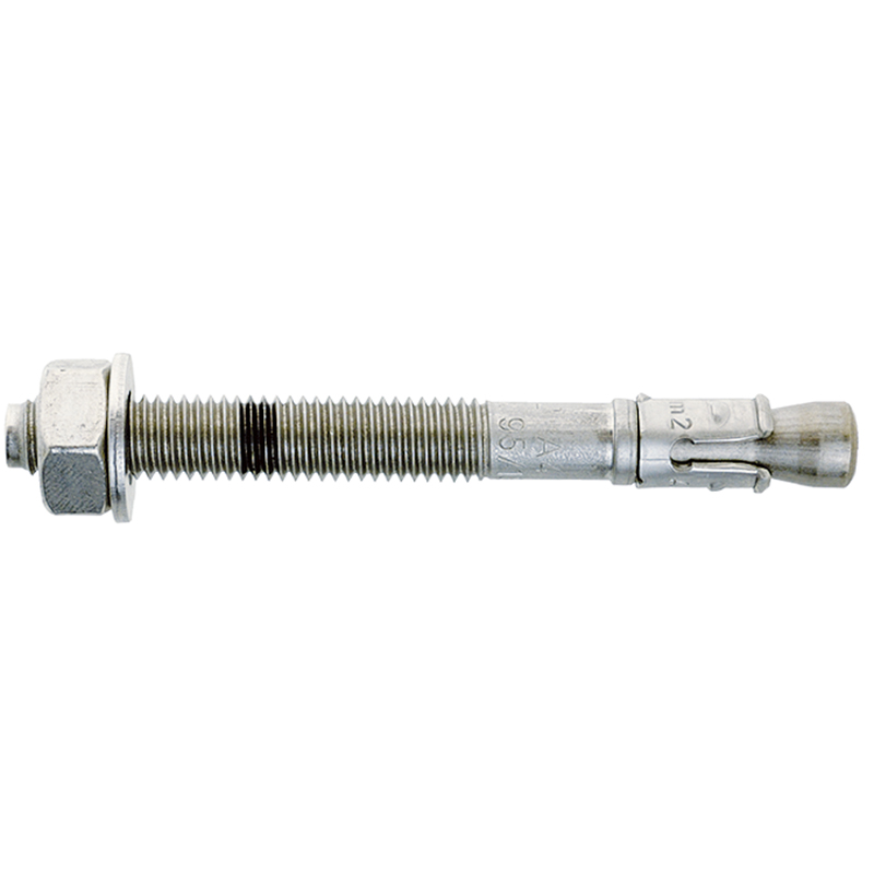 Stahl verzinkt, für Vor- und Durchsteckmontage in Beton, Spreizklammer aus Edelstahl, mit montierter Mutter und Unterlagsscheibe DIN 125 A
