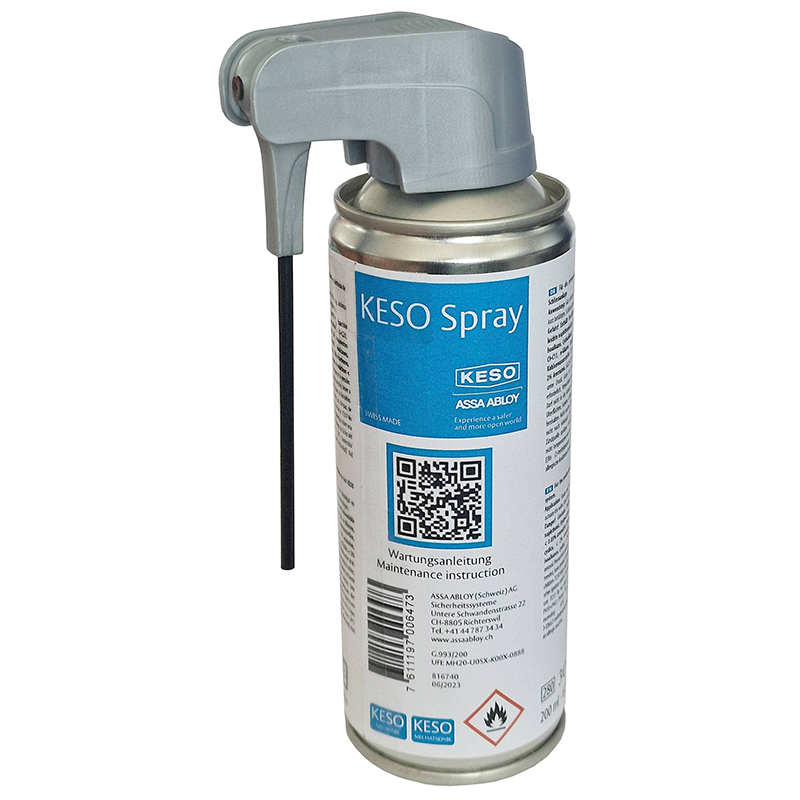 - mechatronische Zylinder: auf Schlüssel sprayen, Schlüssel 2x drehen - Nicht verwenden für: KESO Change Code und KESO Euro Change Code