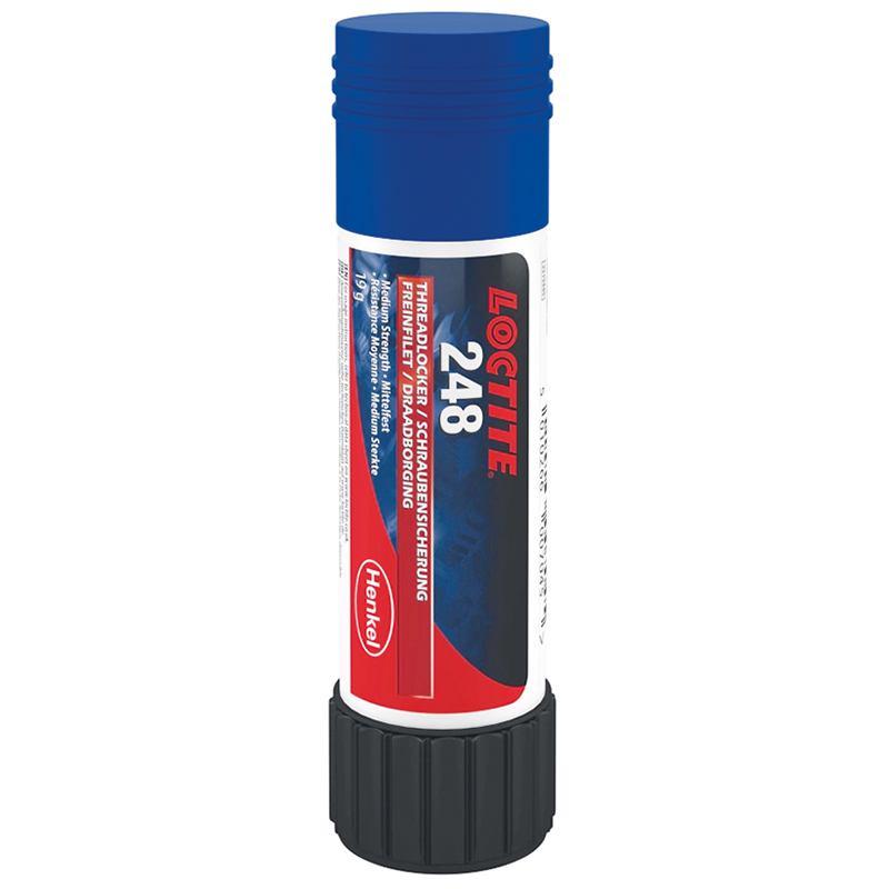 universell einsetzbare mittelfeste Schraubensicherung, wird in praktischer Stick-Form geliefert, sichert Schrauben, Muttern und Stehbolzen gegen das Losdrehen durch Vibrationen und dichtet gleichzeitig ab, geeignet für alle Metalle, einschl. passive Werkstoffe wie Edelstahl, Aluminium und galvanisierte Oberflächen, besitzt erwiesene Toleranz gegenüber geringen Verschmutzungen durch Industrieöle, z. B. Motor-, Korrosionsschutz- und Schneidöle, Verarbeitungstemperatur -55 - 150° C, Losbrechmoment 23 Nm (M10)