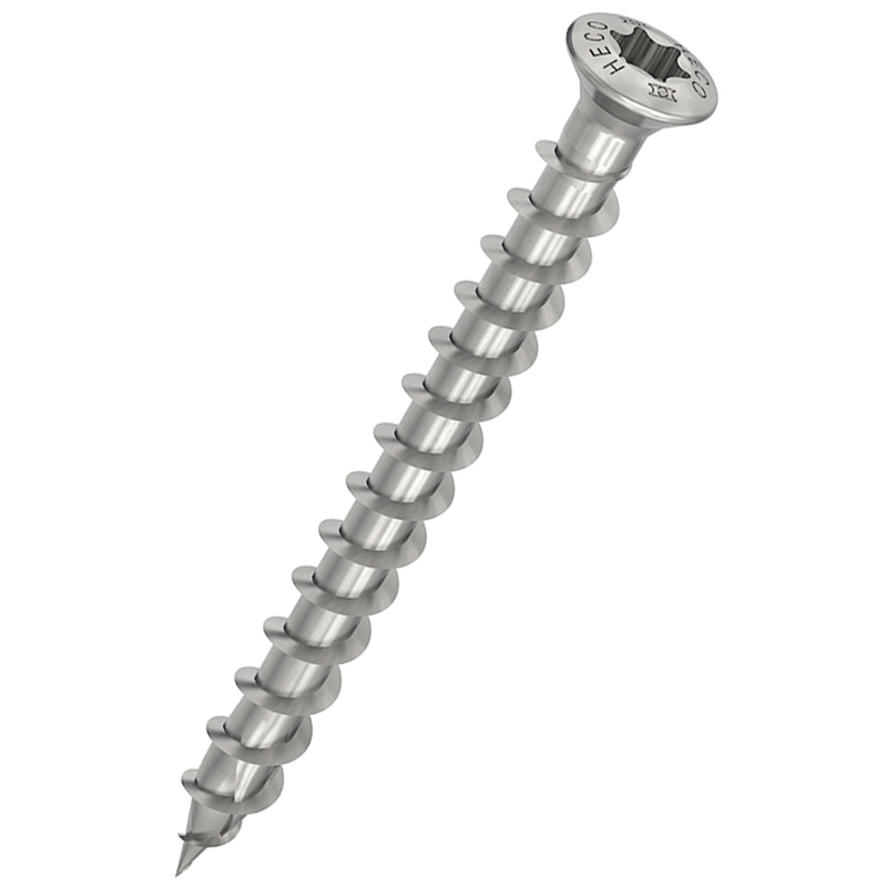 Edelstahl A2, mit Torx, kleiner Linsenkopf für optisch ansprechende Montage und weniger Staufeuchte, das Vollgewinde der Fassadenschraube mit veränderlicher Gewindesteigung (PerfectPitch) zieht die Fassadenbretter sicher an die Unterkonstruktion, ohne dass der Kopf tief im Holz versenkt werden muss, die Fassade wird über das Gewinde gehalten und axial fixiert, dadurch werden höhere Ausziehlasten erzielt, weniger Befestigungspunkte und höhere Wirtschaftlichkeit der Fassadenausführung sind die Folge, TOPIX-Spitze macht Vorbohren überflüssig, reduziert die Spaltgefahr des Holzes und ermöglicht enge Rand- und Achsabstände, GripFit (erlaubt einhändiges Arbeiten), MagicClose (patentiertes Vollgewinde zieht Holzbauteile ohne Vorspannen spaltfrei zusammen), Zulassung ETA-19/0553