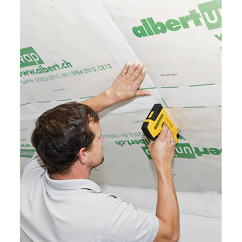 robuste, geschmeidige, universell einsetzbare und vliesverstärkte Dampfbremse für den warmseitigen Einbau im trockenen Innenausbau, nicht für den Einsatz bei Einblasdämmung geeignet