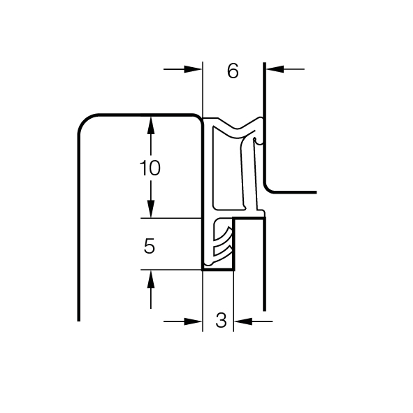 TPS-Qualität, thermoplatisches Elastomer Schaum, als Überschlagdichtung einsetzbar, Anschlagluft 6 mm