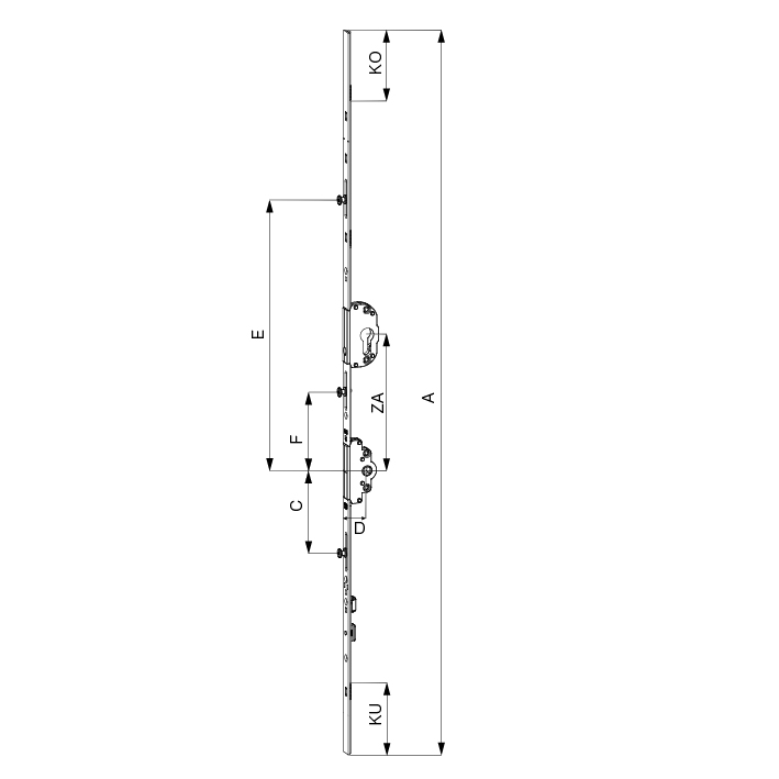 C / F / E = Schliesszapfenhöhe, ab Mitte 4-kant-Nuss