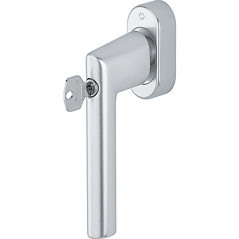 Aluminium, mit Rasterung bei 90°, mit SecuForte® und VarioFit®, automatische Sperrfunktion in Geschlossen-Stellung (0°) und Kippstgellung (180°), Vollstift, 10 mm Längenvariabilität, stufenlose Anpassung durch integrierte Druckfeder im Griffhals, geprüft nach DIN EN 13126-3: 23/180-0131/13/C1 und RAL-GZ 607/9, DIN EN 1627-1630 RC1-6, mit Schlüssel (Schliessung 1130) mit Schrauben M5 x 45 und M5 x 50 mm