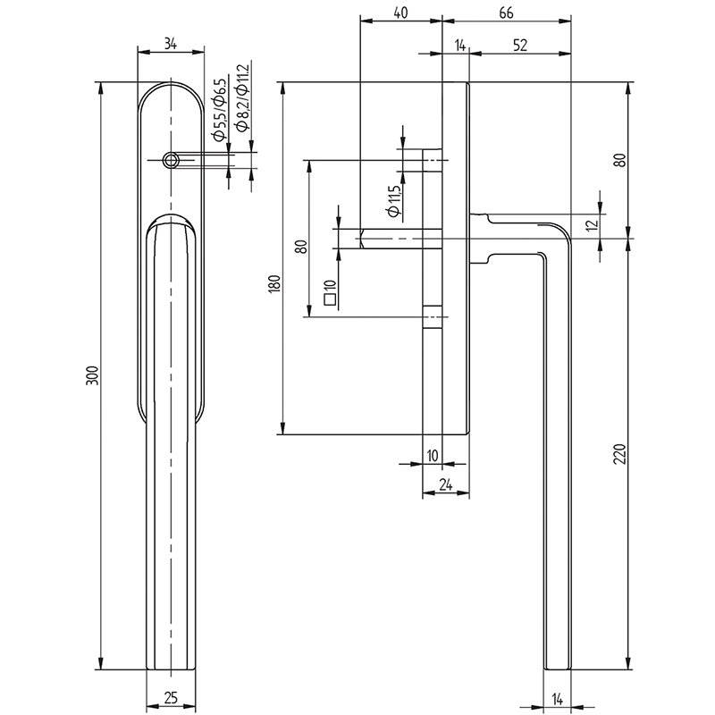 - Hebeschiebetürgriff mit RZ-Ausschnitt oder mit eckiger Rosette ab Werk.