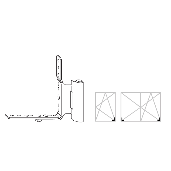 silberfarbig, höhenverstellbar ± 2 mm, andruckverstellbar ± 1 mm, max. Flügelgewicht 130 kg, Ecklagerbolzen Ø 6 mm