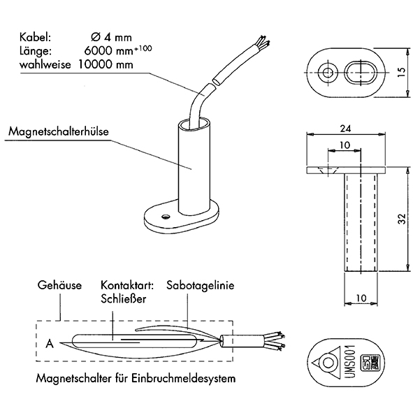 - Zur Ermittlung der Einbaupositionen des Magnetschalters siehe Tabelle.