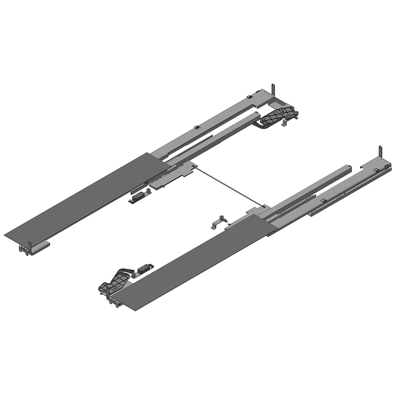 Erreichbarkeit des Ladegutes von zwei unterschiedlichen Seiten / Räumen / Zonen spart Zeit und erhöht die Effizienz, komplett vormontiertes Beschlagset, für Seite 16 / 19 mm, Fronthöhe mind. 127 mm, mit Einlaufdämpfung Softclose, Nutzlast 40 kg, Push-to-open für griffloses Öffnen einseitig möglich, Front beidseitig 3D-justierbar, Einbau des Führungssystems von Grass erfolgt auf verstärkten Möbelzwischenboden, bietet innovative Lösungen für spezifische Anforderungen, individualisierbar bezüglich Abmessungen und Materialisierung, Einsatzmöglichkeiten: Kücheninseln, Ladentheken, Gesundheitsbranche, Raumteiler, POS Verkaufsplätze, Kosmetikstudio, Labore, etc., ohne Tipmatic Soft-close Set, ohne Synchronisationsstange, ohne Verstärkungswinkel-Set für hohe Fronten