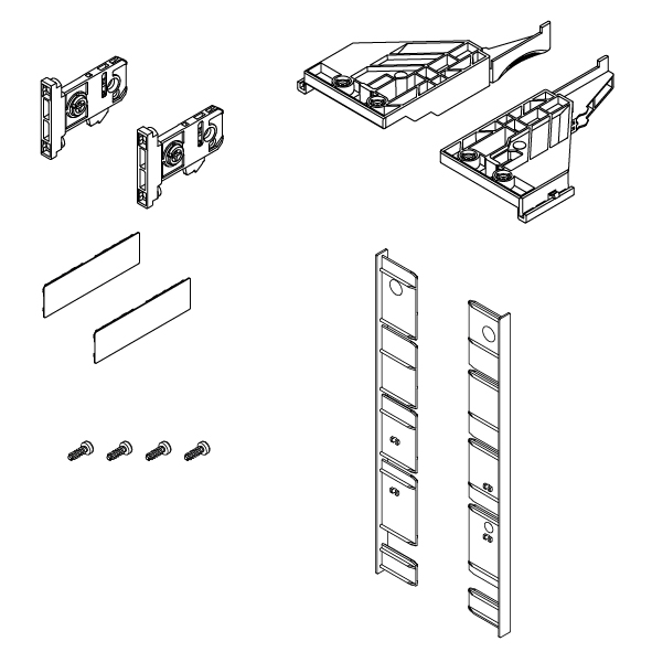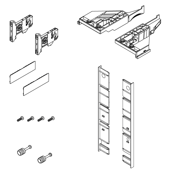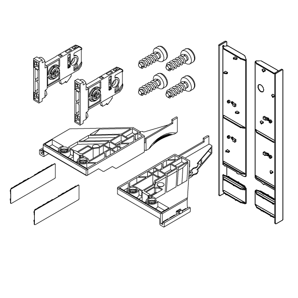 Montage-Set für Zargenhöhe 89, 121 oder 185 für 1 Schublade besteht aus: