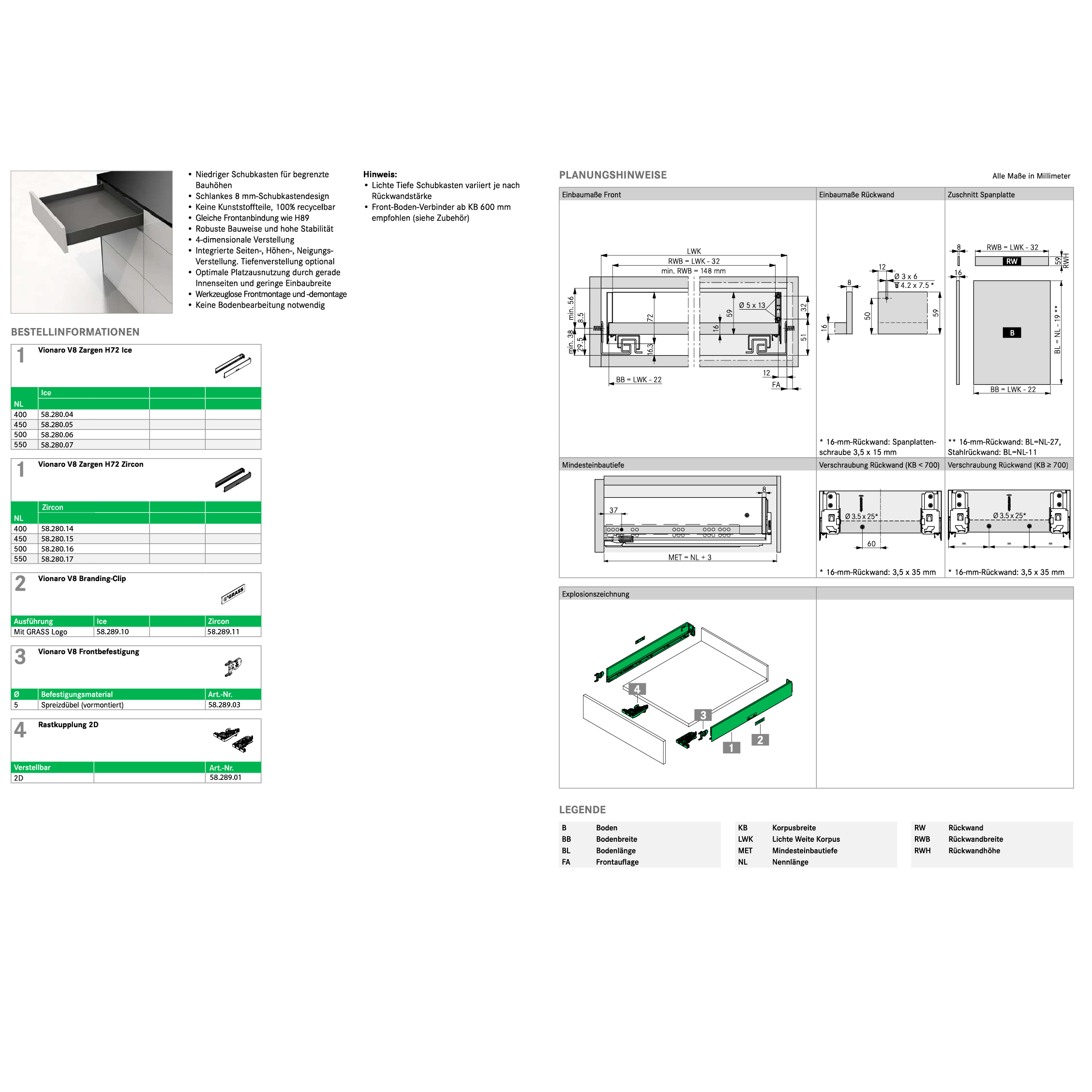 Zarge GRASS® Vionaro V8, Zargenhöhe 72 mm