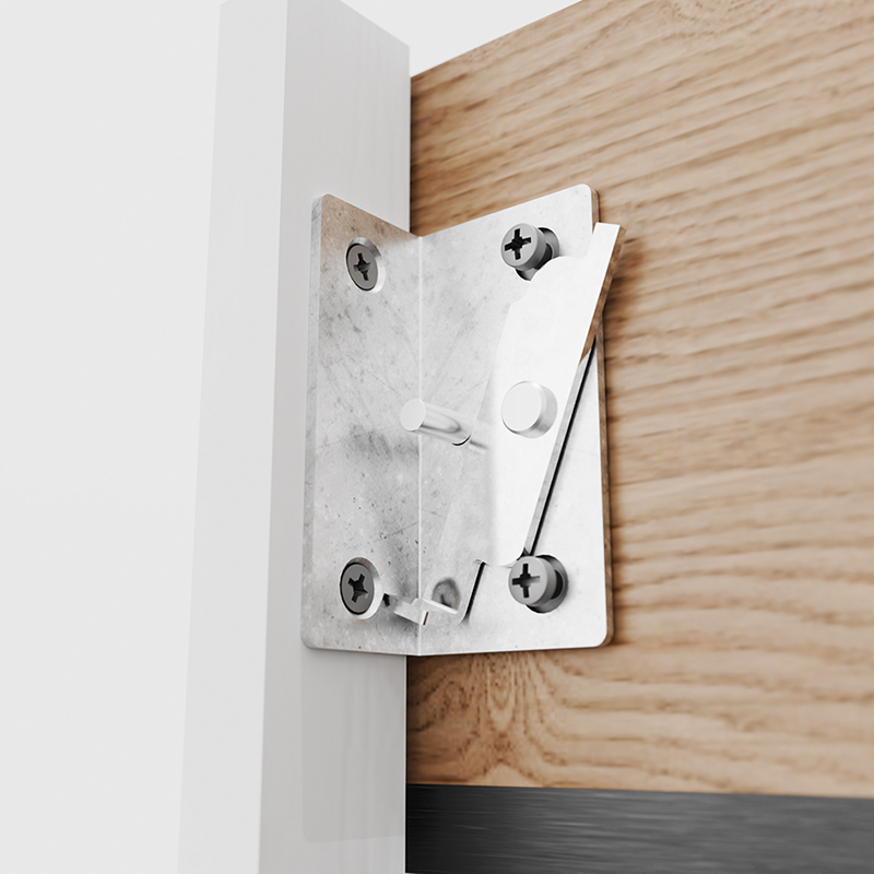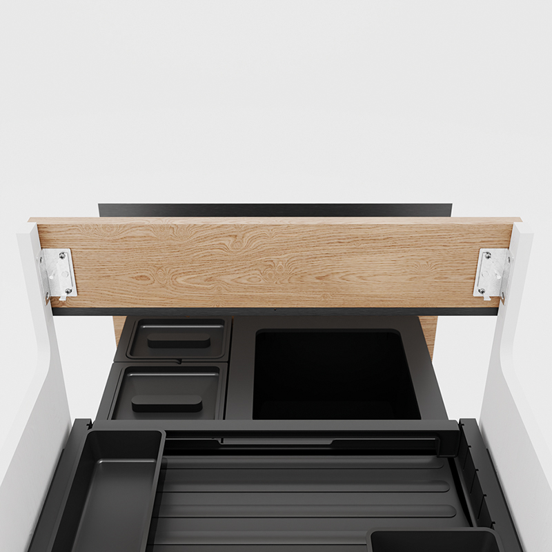 Edelstahl, einfaches positionieren mit Tablastiften, präzise Frontausrichtung über Verbindungsbolzen. Masshaltigkeit und Winkelstabilität vom Korpus. Frontsicherung durch einrastende Verschlussbügel, einfache Demontage.