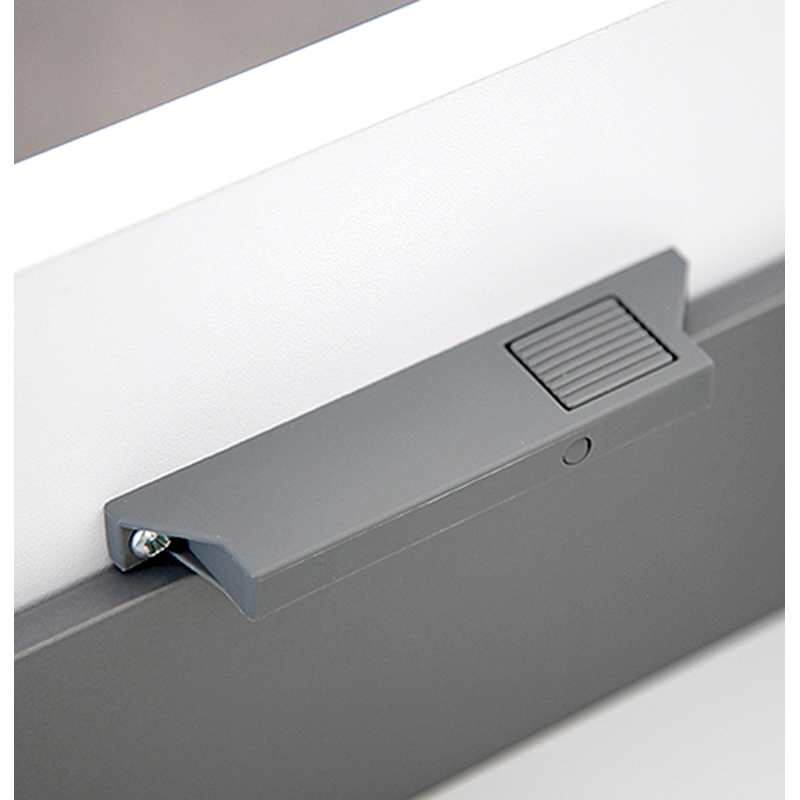 Kunststoff anthrazit, gleichzeitige Öffnung der obersten Innenschublade mit dem Auszug für direkten Zugriff auf die Innenschublade, einfaches Lösen der Befestigung durch Drucktaster, ideal bei Möbelkonstruktion mit hohen oder hochgezogenen Fronten und dahinterliegenden Innenschubladen, für Seitenstärke ab 18 mm, mit Schrauben und Montageanleitung