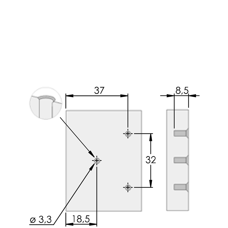 Spezialscharnier für dünne Türen und Vollkernplatten (HPL),