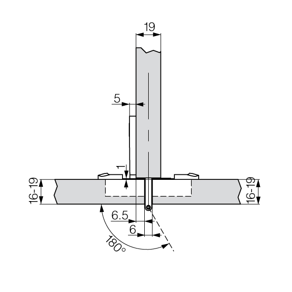 Einachsscharnier GRASS® mit sichtbarer Achse, mit schmalem Fugenbild, Fuge 6 mm