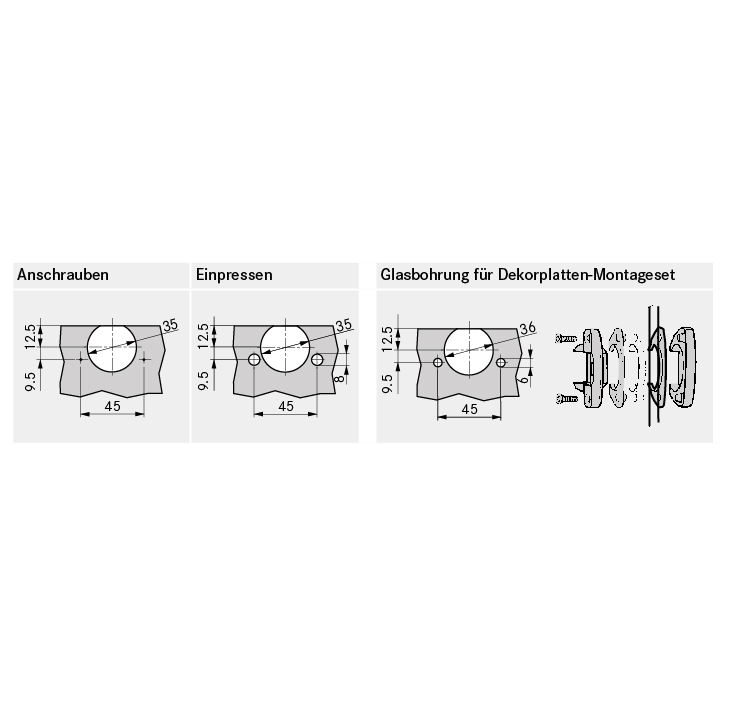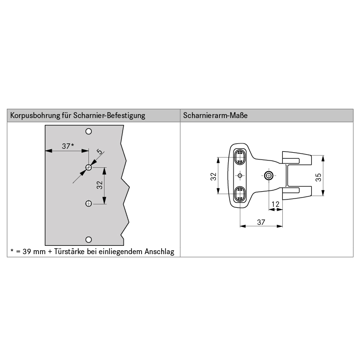 - Bei Zwillingsbändern werden pro Scharnierarm 2 Einbohrtöpfe benötigt.