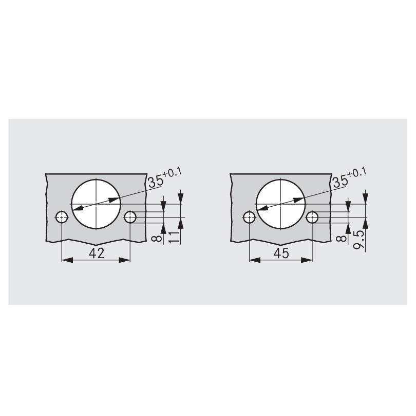 Topfband GRASS® Tiomos 110° Impresso, für Stollenkonstruktionen, Kombibohrbild 42/11 / 45/9,5