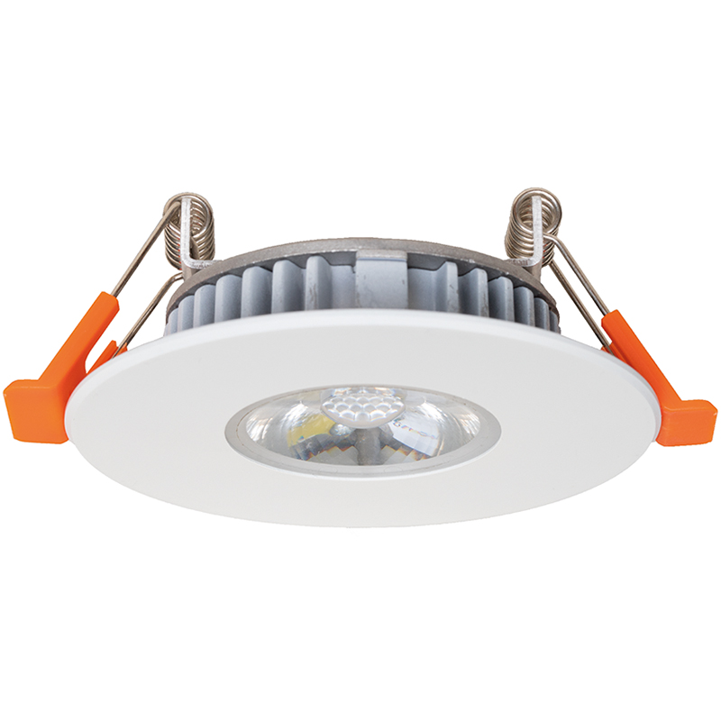 Aluminium RAL9016 weiss, Lichtfarbe warmweiss 3000°, 24 Volt DC, Ra 80, 78 Lm/W, Anschlussleitung 100 mm mit 0,75 mm2 Leitung, mit Wago-Klemmen, dimmbar, in Decken, für Einbohr-Ø 65 - 78 mm