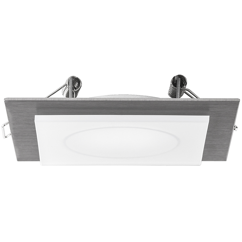 Aluminium edelstahlfinish mit mattiertem Glas, Lichtfarbe 2700 - 5000°, 24 Volt DC, Ra 95, 105 Lm/W, Anschlussleitung 200 mm mit 3 x 0,75 mm2 Leitung, 3er Wago-Klemme, für den Einbau in Decken, ohne Konverter