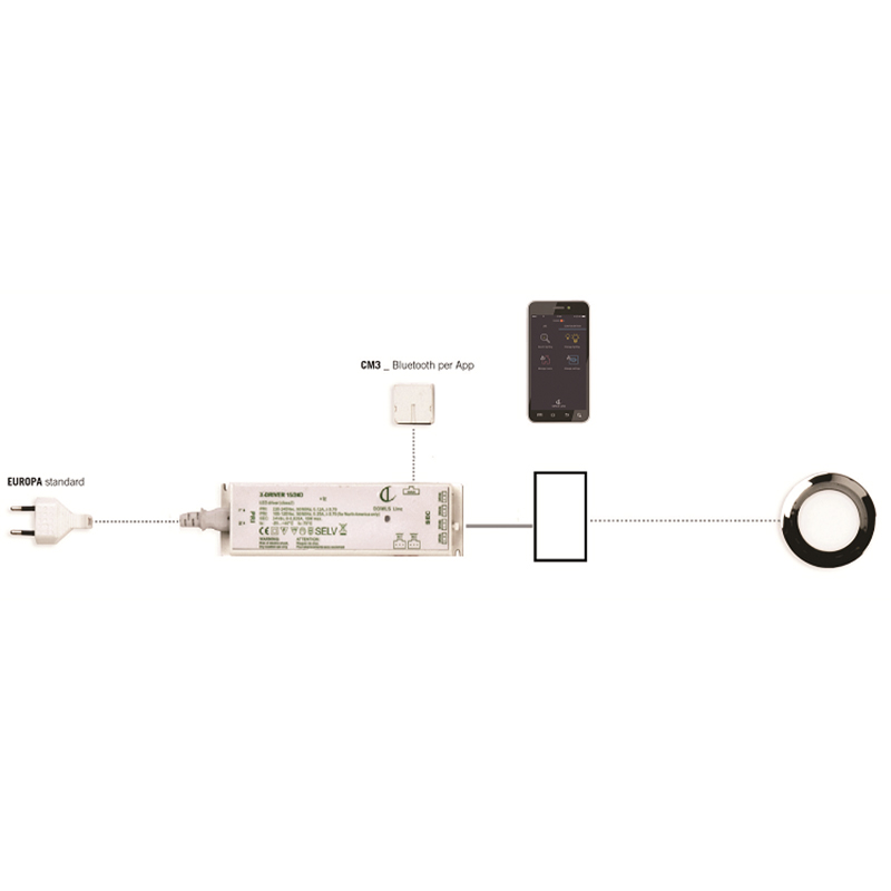 Steuermodul verwandelt den Konverter in einen kabellosen Empfänger mit Bluetooth- / Wifi-Technologie, der vom Smartphone, dem Tablet oder einer Smartwatch aus alle LED Strahler / LED Strips steuern kann, Primärleitung 2000 mm mit Euroflachstecker, sekundär LED 12-fach Verteiler, ohne Steuermodul,