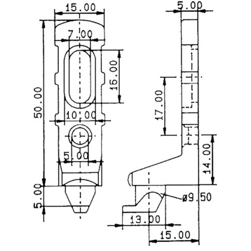 Zink vernickelt, mit Langloch für Euro-Rasterschrauben,