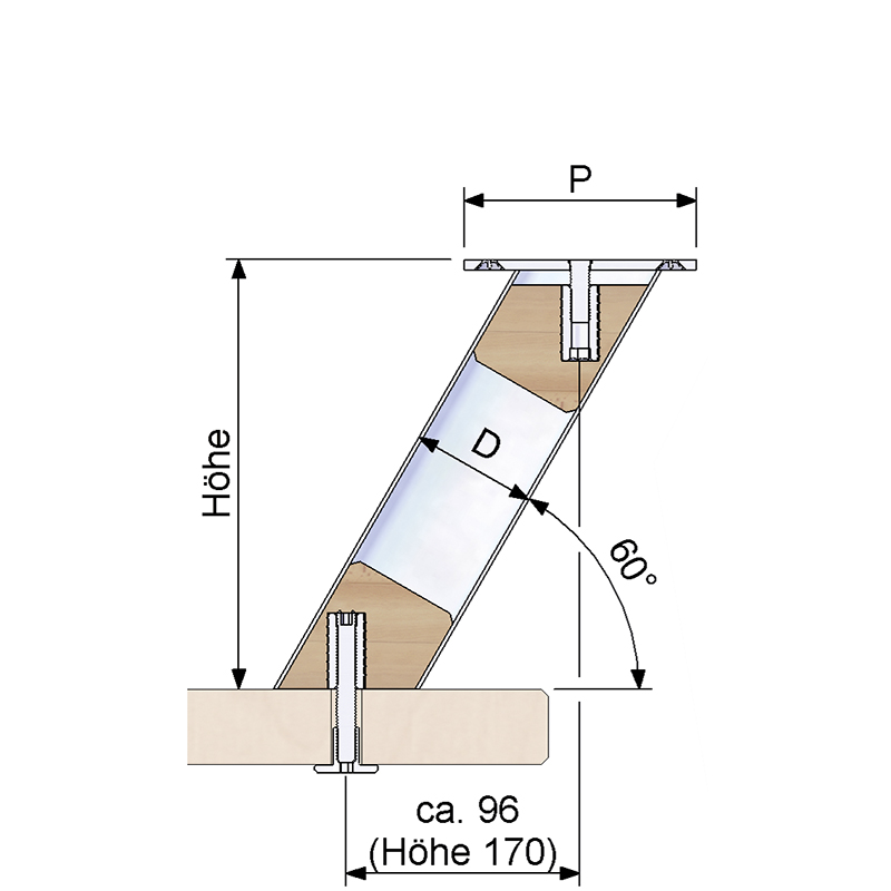 Rundrohr Ø 50 mm, Höhe 170 mm, Befestigungsplatte 92 x 92 x 4 mm, mit Gewindestift M8, Loch-Ø 6 mm, Zentrumloch Ø 8 mm, zum Anschrauben, Leimen