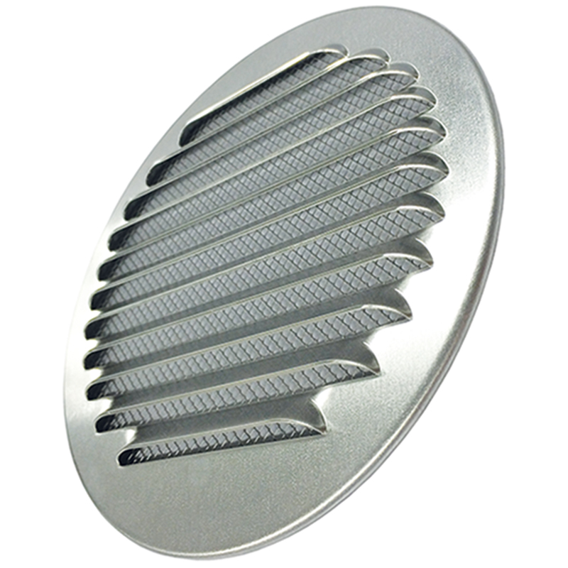 Aluminiumblech gestanzt und gepresst, zum Aufschrauben oder Aufkleben, rückseitig mit aufgepunktetem Fliegengitter,