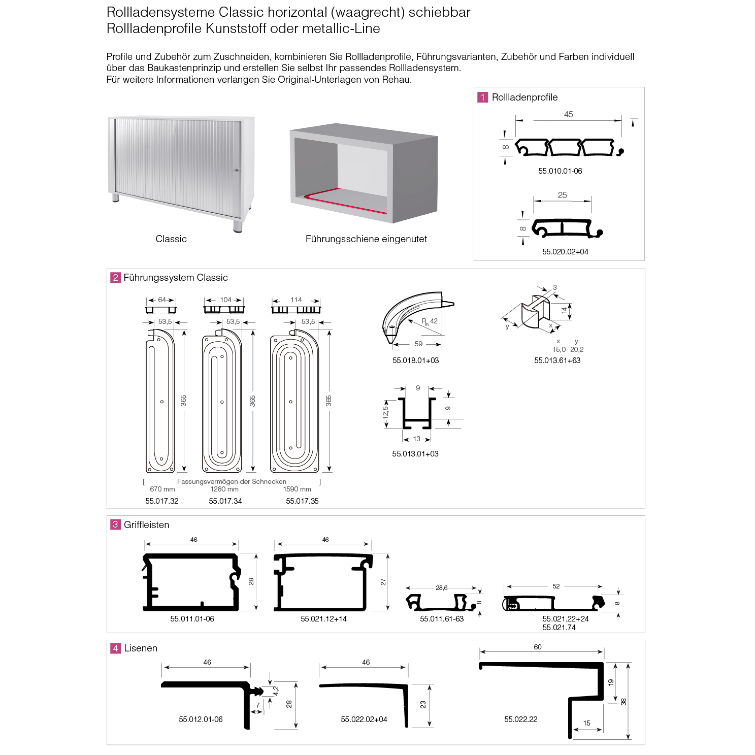 Rollladensystem REHAU Classic, horizontal (waagrecht) schiebbar, Rollladenprofil Kunststoff
