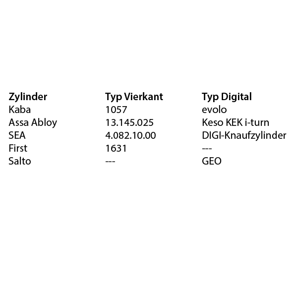 - Möbelzylinder Typ Vierkant oder Europrofil Halbzylinder (siehe passende Zylinder)