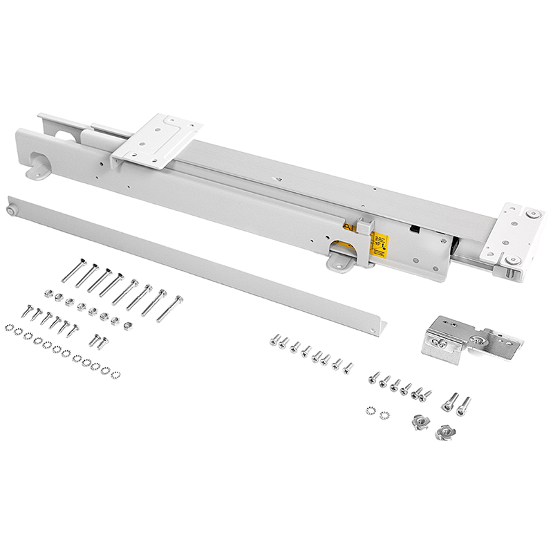 Stahl lichtgrau RAL 7035, für Bodenmontage, mit Differenzial-Vollauszug, Tragkraft 170 Kilo, Elementgrösse max. 600 x 2200 mm, Tragkraft 340 Kilo, Elementgrösse max. 800 x 2200 mm (bei Tandemlösung mit 2 Auszügen und Verbindungs-Set), ab Auszugslänge 430 mm optional mit Einzugsdämpfung nachrüstbar, Einbauhöhe unten 87 mm, oben 40 mm