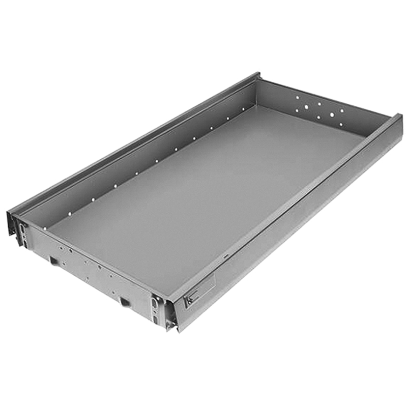 Stahlblechkonstruktion schwarz RAL 9005 mit Vollauszug Grass Nova Pro für schwebeleichten Lauf, mit Dämpfer Soft-close,