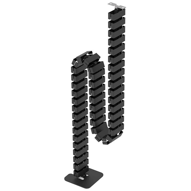 Kunststoff Kabelsäule für höhenverstellbare Sitz- und Steharbeitsplätze, mit vertikaler Tischanbindung und Standfuss inkl. Schrauben, bestehend aus 45 Kettengliedern für eine maximale Höhe von 1350 mm, mit zwei getrennten Kabelwege, die Kabelführung kann freihängend oder mithilfe eines Magnethalters am Tischbein befestigt werden, die Länge lässt sich durch einfaches entfernen einzelner Kettenglieder flexibel anpassen