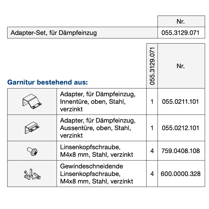 Adapter-Garnitur HAWA, zu Dämpfung Combino 20 / 35
