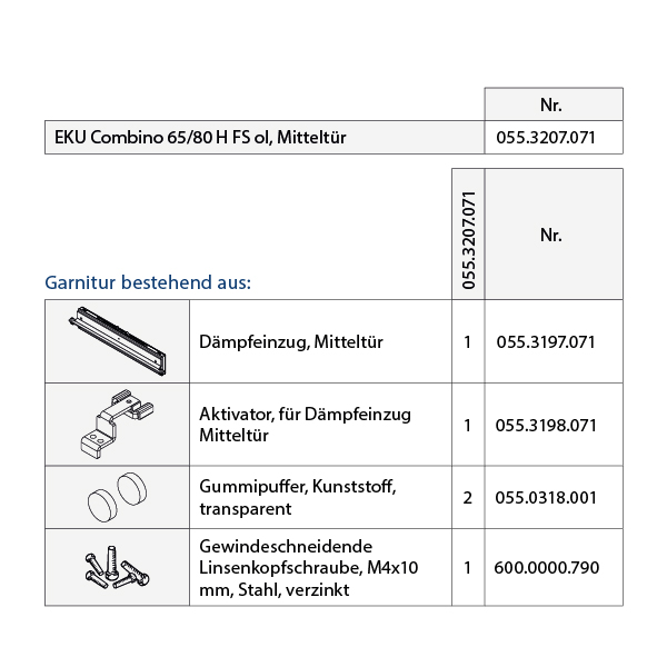 - * Bei Dämpfung in Öffnungs- und Schliessrichtung immer 2 Garnituren bestellen.