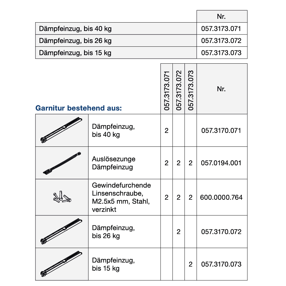- Schiebetürbeschläge Clipo 26 / 36 Holz siehe 49.000.52-71