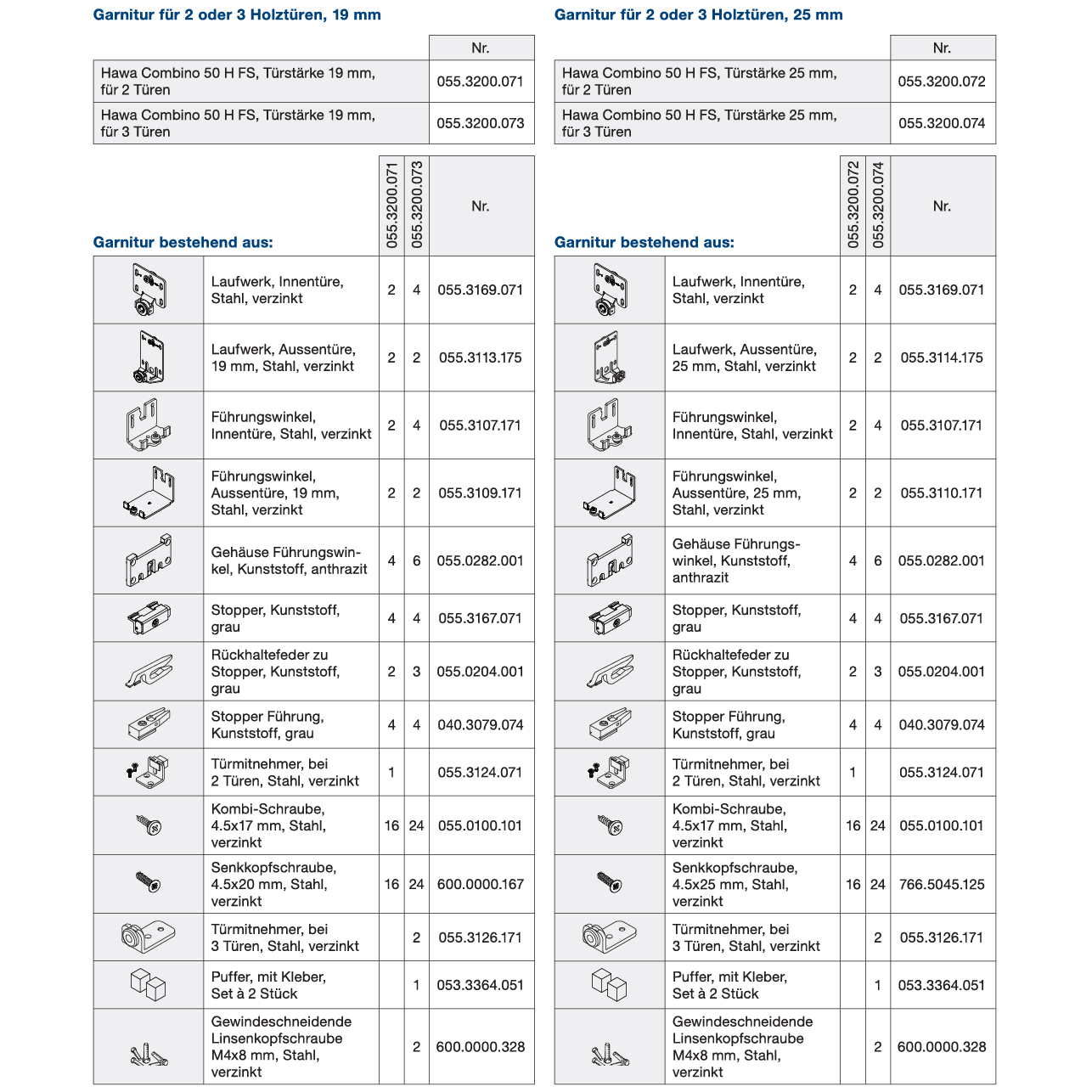 Schiebetürbeschlag HAWA Combino 50 H Forslide, für Dämpfeinzug