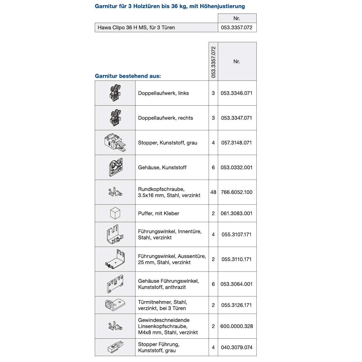 Schiebetürbeschlag Holz, HAWA Clipo 36 H Mixslide