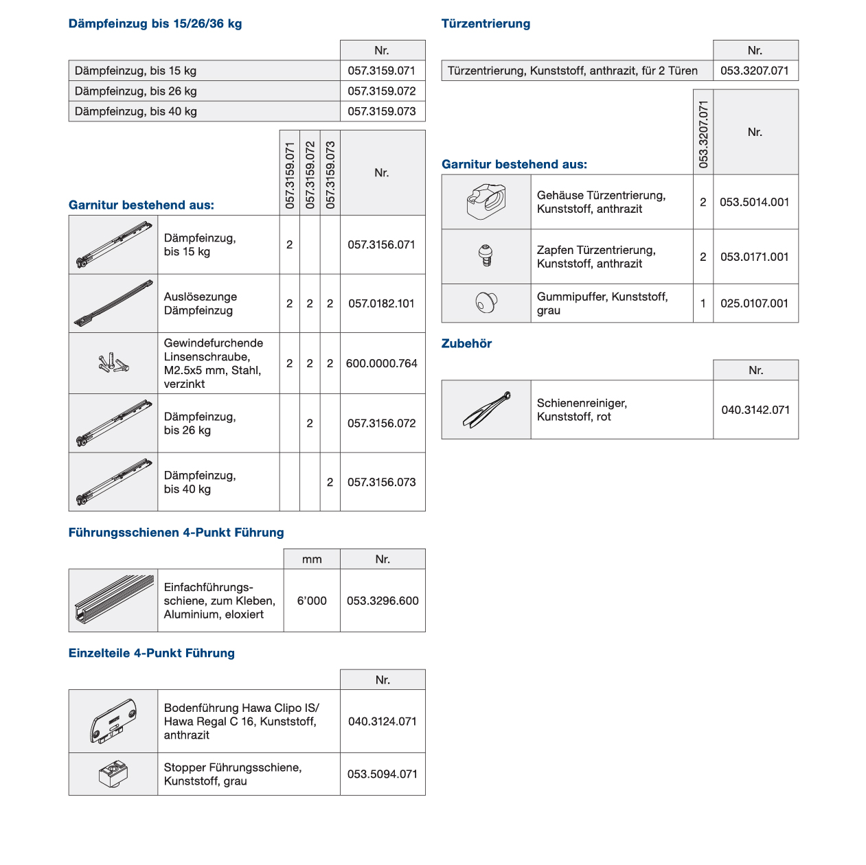 - Dämpfung Clipo 26 / 36 siehe 49.020.41-43