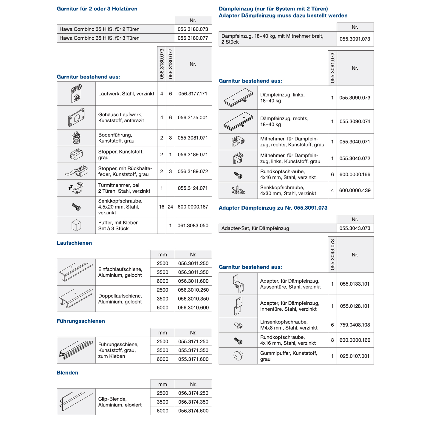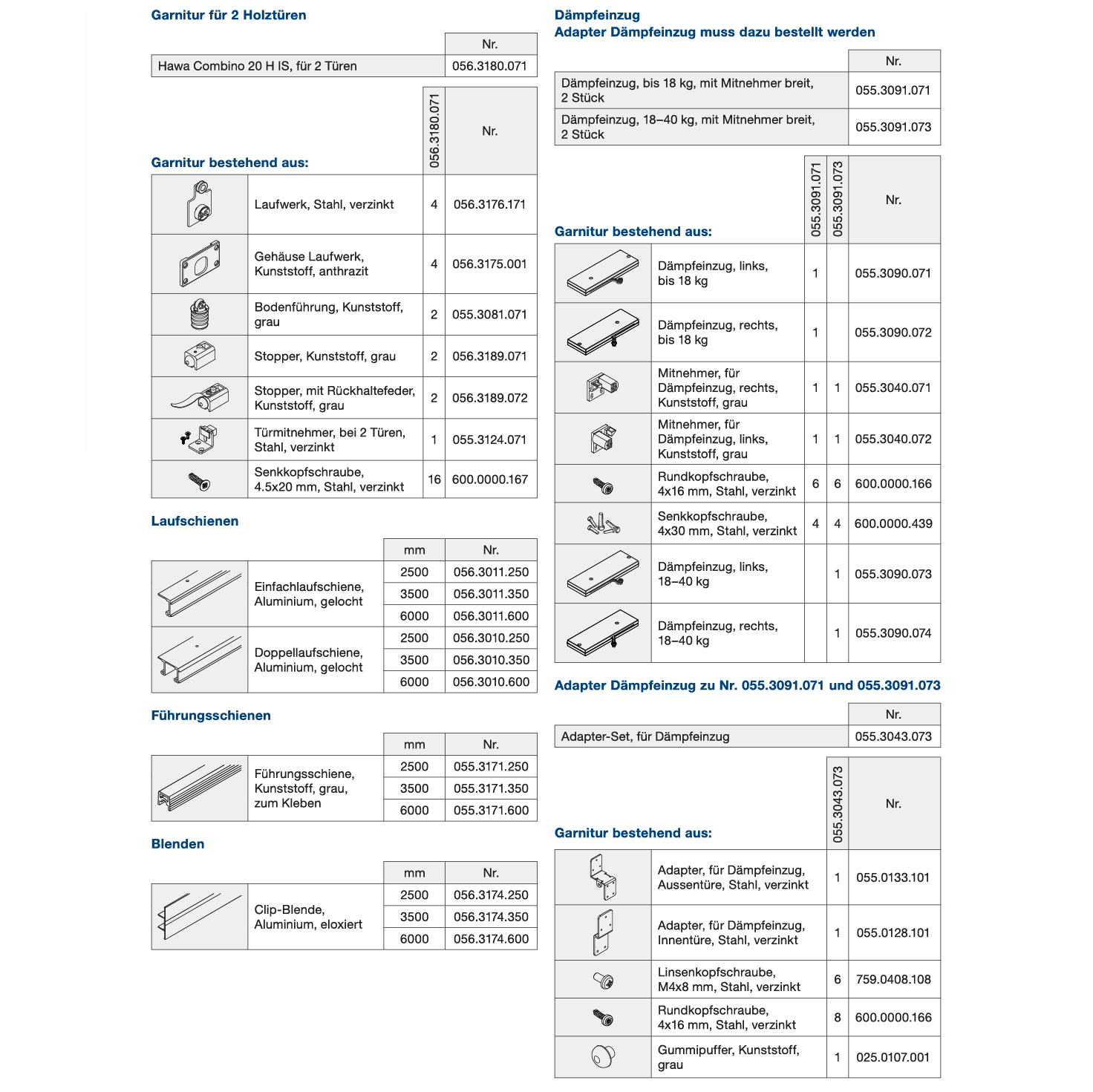 Schiebetürbeschlag Holz, HAWA Combino 20/35 H Inslide