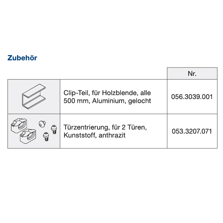 - Empfohlener Montageabstand für Clip-Teil für Holzblende 49.064.61 alle 500 mm.