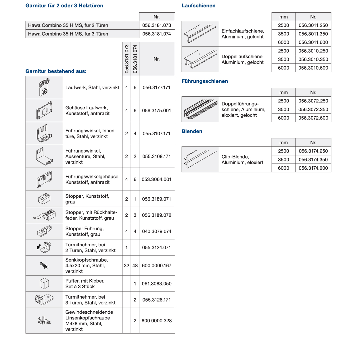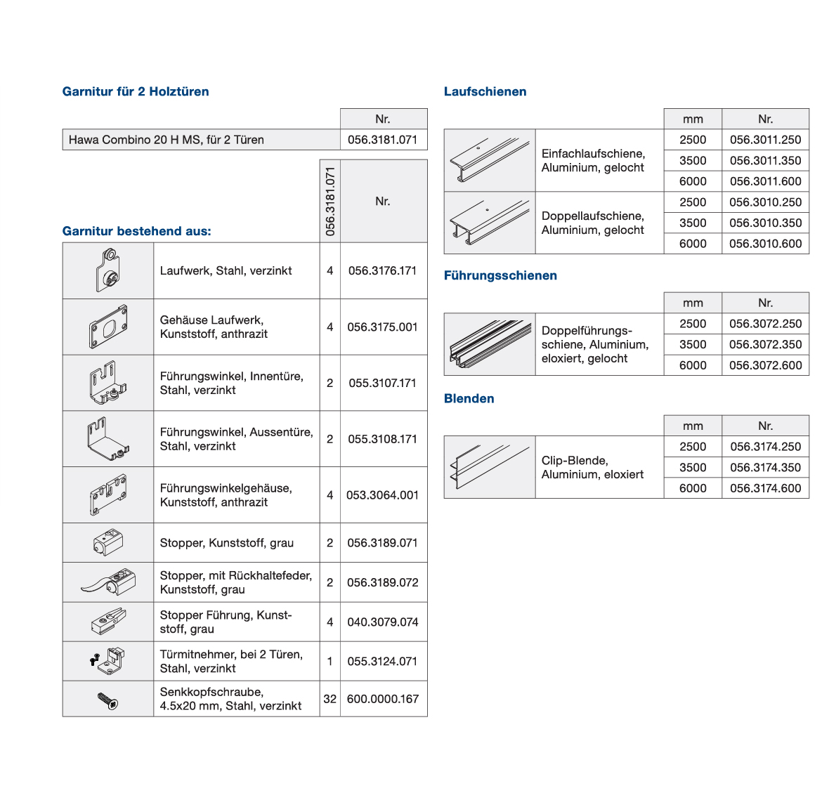Schiebetürbeschlag Holz, HAWA Combino 20/35 H Mixslide