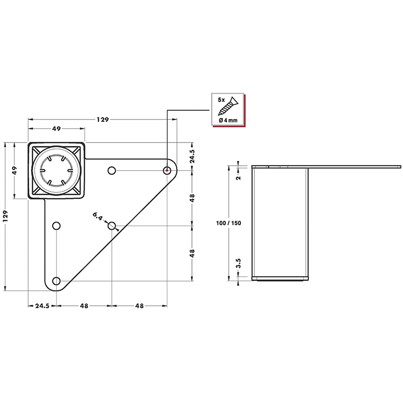- Schrauben RK Ø 6 mm für Anschraubplatte.
